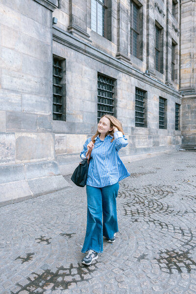 Tijdens de shoot wist ze me spontaan aan het lachen te maken, hielp met poses bedenken en zorgde voor een ontspannen, fijne sfeer